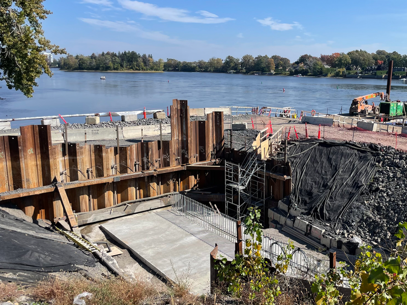 Structure de recouvrement au-dessus de la bretelle de sortie de l’autoroute Ville-Marie avec une structure architecturale​